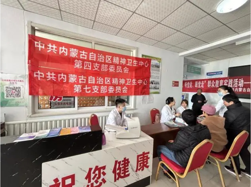 开展系列义诊宣传活动。4月2日上午,第四党支部、第七党支部及情感障碍治疗科,到土默特左旗北什轴乡卫生院,为这里的特殊群体义诊传递爱心。