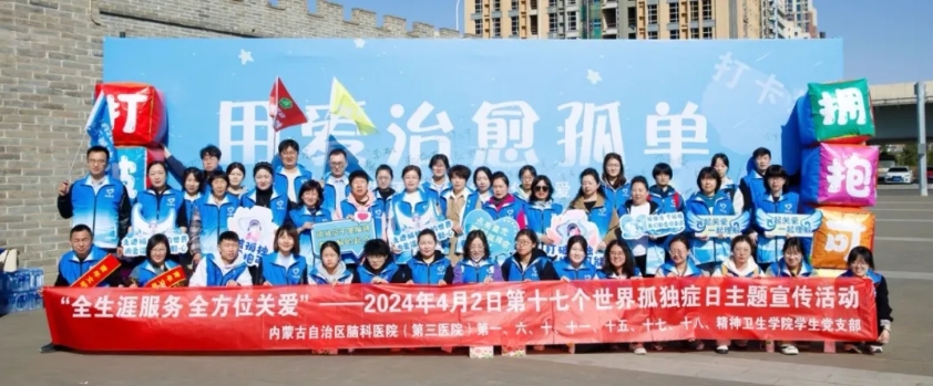 联合自治区残疾人联合会、自治区精神残疾人及亲友协会举办了主题为“感党恩、听党话、跟党走”——世界孤独症日主题宣传活动。自治区残疾人联合会组联部一级调研员赵桂云,自治区脑科医院党委副书记、院长、自治区精神残疾人及亲友协主席于东升,自治区脑科医院副院长王文忠,呼和浩特市残疾人联合会党组成员、副理事长徐帆,呼和浩特市卫生健康委员会四级调研员吴东东,呼和浩特市精神卫生项目办主任李春峰,呼和浩特市新城区残疾人联合会副理事长张俊峰,自治区精神残疾人及亲友协会副主席张婷婷,社会爱心人士及志愿者代表参加本次活动。