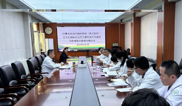 2024年4月7日下午,王文忠副院长在察布路院区二楼会议室召开了分管科室行风建设与医德医风管理专题会,会议邀请纪检监察科主任、行风办主任出席,各分管科室及第三方服务部门负责人参加了会议。