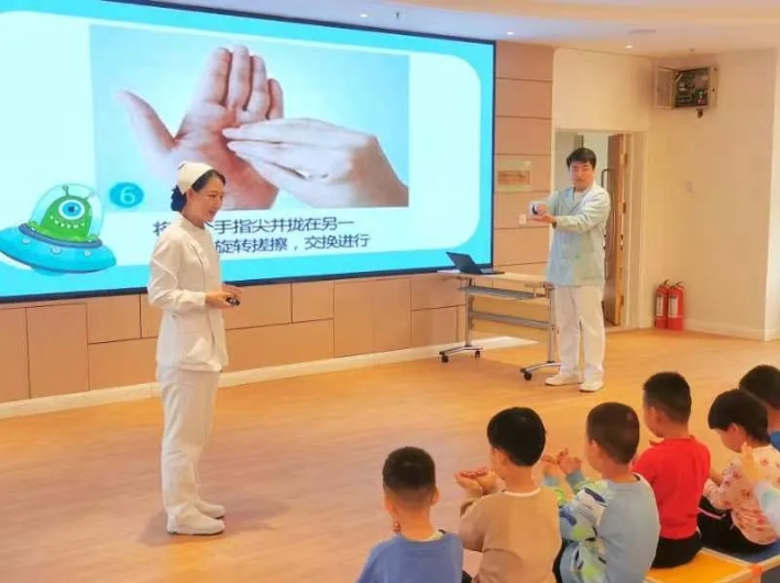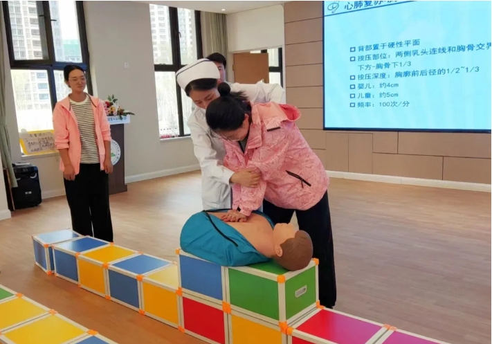 活动中,志愿队员与小朋友们在互动中了解了手卫生的重要性,学会了七步洗手法。科普宣传员结合日常生活中发生的典型案例,形象生动、通俗易懂地科普了噎食的注意事项,并通过现场实际操作演示了海姆立克急救及心肺复苏急救技术,指导老师们操作要点及注意事项。