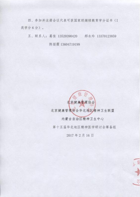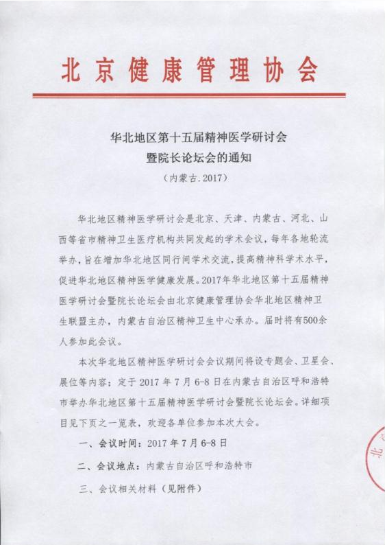 华北地区第十五届精神医学研讨会暨院长论坛会的通知