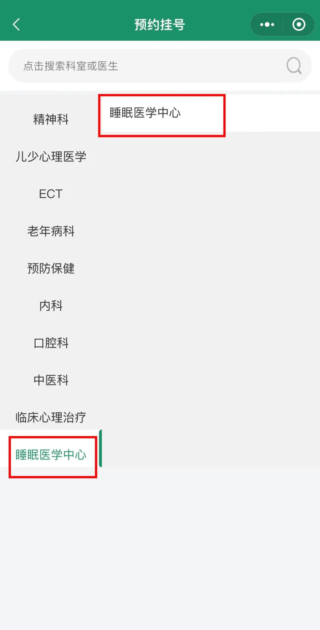 8、左侧导航栏点击“睡眠医学中心”,再点击“睡眠医学中心”