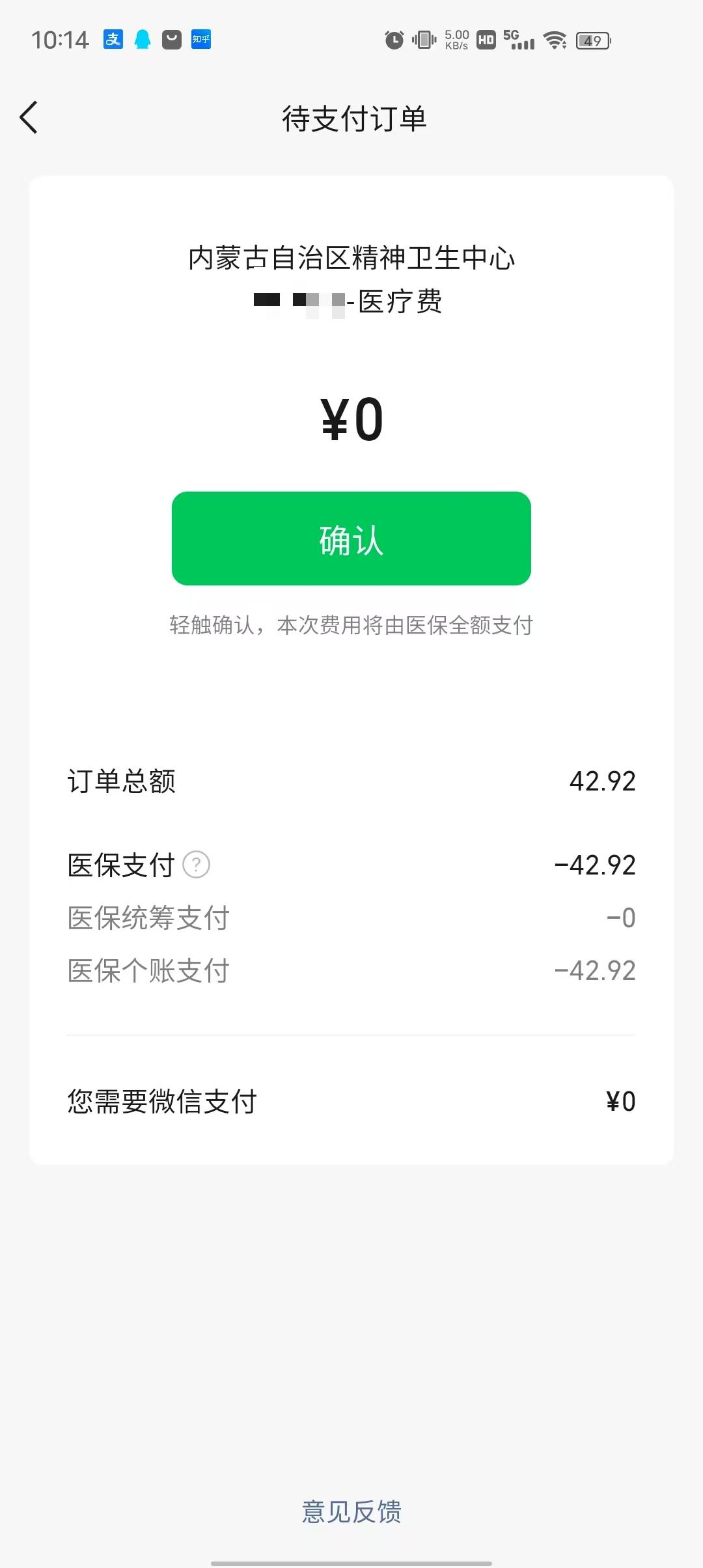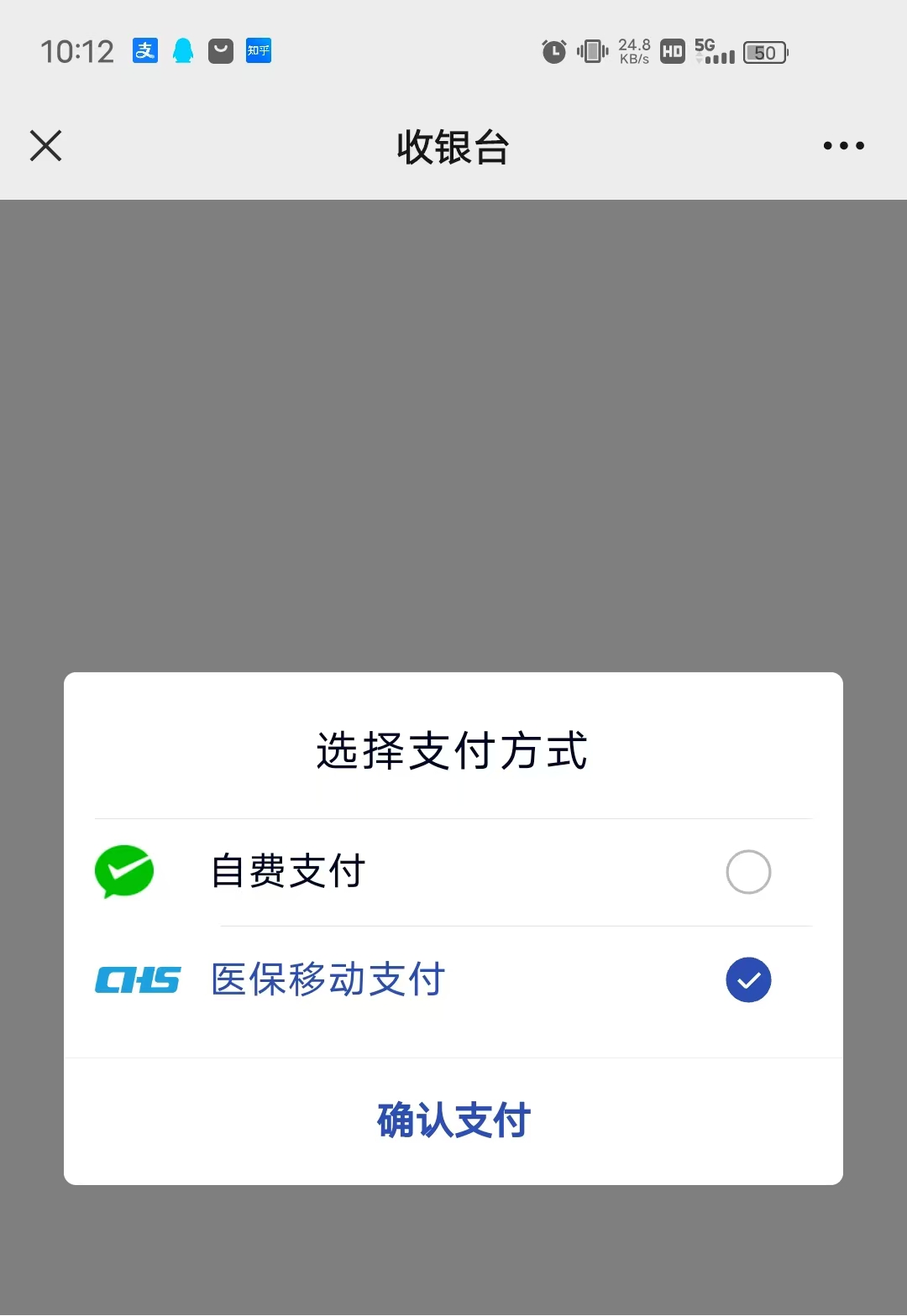 7.微信费用支付,点击“确定”,完成其余费用支付。