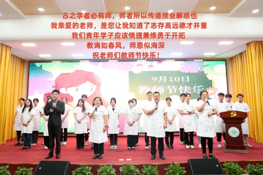 年教师节表彰活动。党委书记陈丽霞、党委副书记仝利俊、纪委书记莫日根、副院长白银霞、王文忠、黄永清,各行政职能科室主任,各教研室主任、秘书,各临床科室主任、护士长、秘书,全体带教老师(含硕士研究生导师),全体在培医师、本科生及研究生