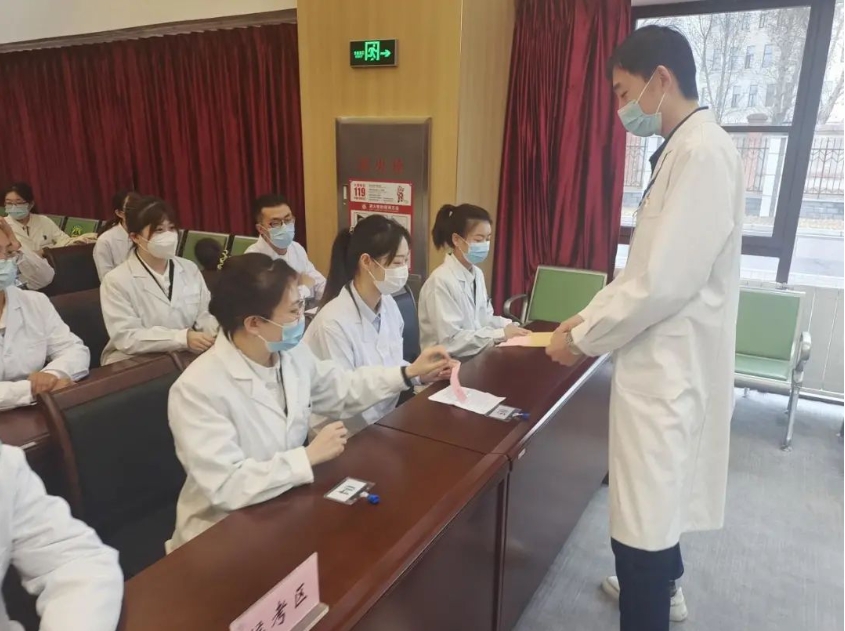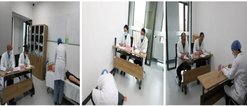 4月2日当天随机抽取具有副高级以上职称的命题专家,封闭式命题。4月3日,在鸿盛院区教学楼3楼进行实践技能操作考试,严格按照OSCE形式执行;同时,在2楼教室进行综合素质能力面试。考前随机抽取面试考官并培训,对考核的纪律要求、评分一致性、回避保密原则等进行进一步强调,确定了考核组长及成员。面试过程严格执行“三随机”工作机制,确保了面试和实践技能操作考核工作程序规范、结果公开透明,并将考核结果现场复核后及时公布。复试全程录音录像,纪委和内蒙古医科大学研究生院督导员全程监督。
