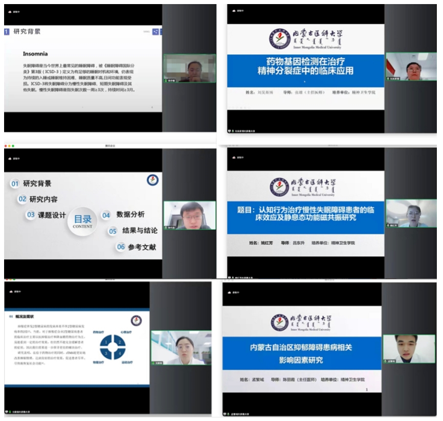 会议特邀新乡医学院第二附属医院医学博士,教授、主任医师、硕士生导师,新乡医学院教学名师杨世昌教授担任预答辩委员会主席,与内蒙古医科大学基础医学院副院长,副教授、硕士生导师康毅敏和精神卫生学院部分导师共同组成预答辩评阅小组,张利主治医师担任预答辩秘书,外地导师通过线上参加,对10名硕士研究生的学位论文进行了严格的审核。全体在读研究生进行了线上观摩,预答辩全程录音录像。