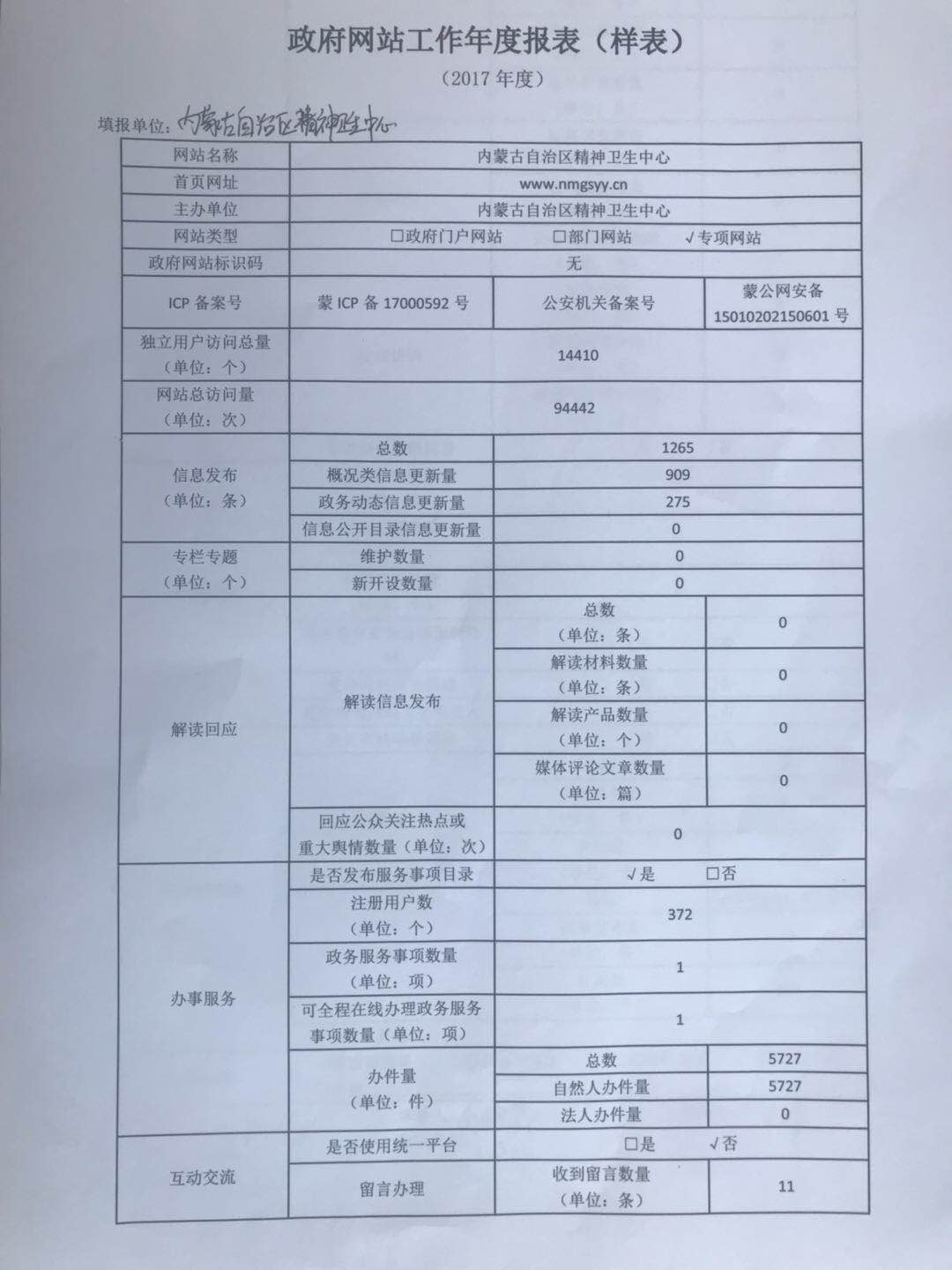 政府网站工作年度报表