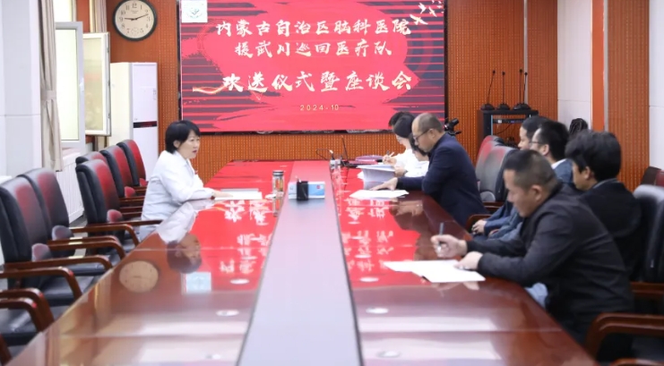 援武川县医院医疗队出征欢送会暨座谈会在察布路院区会议室召开,党委委员、副院长白银霞出席并讲话。总会计师古劲松、医务部主任李浩军、人力资源部、车队等相关部门人员参加。