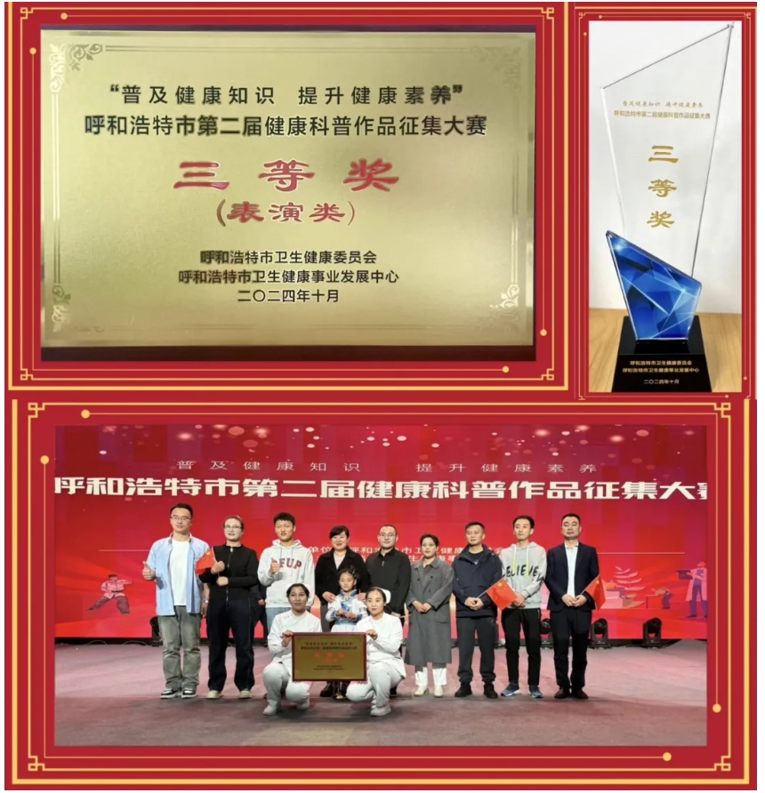 2024年10月29日,由中文黄色网站 护理部选送的原创健康科普情景剧作品《不会消失的爱》参加呼和浩特市卫生健康委主办的“普及健康知识 提升健康素养”呼和浩特市第二届健康科普作品征集大赛表演类作品展演大赛,在16支决赛队伍中脱颖而出,荣获表演类三等奖。