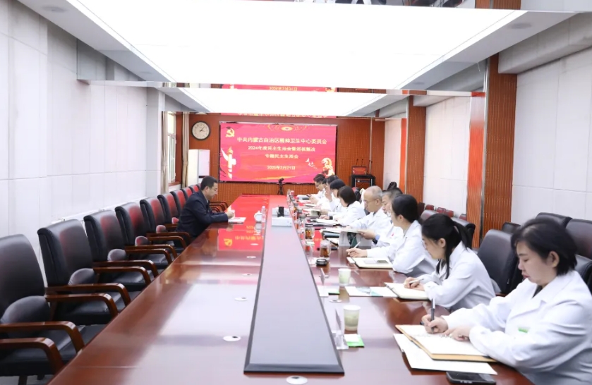 为深入学习贯彻习近平新时代中国特色社会主义思想,巩固深化党纪学习教育成果,按照自治区卫生健康委党组有关部署要求,2月21日,院党委班子召开2024年度民主生活会暨巡视整改专题民主生活会。自治区卫生健康委党建第三责任区副组长、医政处处长阿斯楞同志莅临指导。会议由院党委副书记、院长陈丽霞同志主持,全体班子成员参加会议,党委办公室、院长办公室、纪检监察科、人力资源部负责人列席会议。