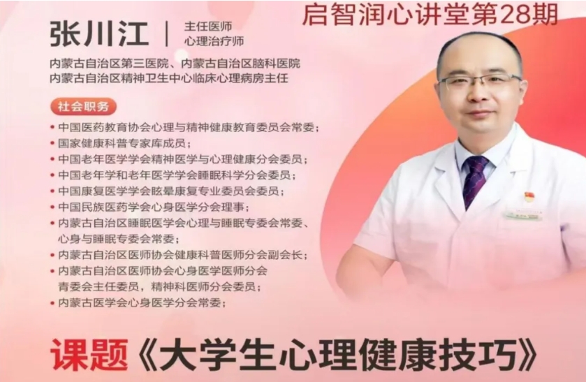 内蒙古自治区积极响应国家“儿科和精神卫生服务年”号召,深入贯彻落实国家心理健康知识讲座巡讲活动,借助5月25日“大学生心理健康日”和全区大中小学心理健康宣传教育月,开展内蒙古自治区心理健康知识巡讲暨5.25心理健康系列讲座,拉开了自治区心理健康知识讲座巡讲序幕。作为内蒙古自治区心理健康知识巡讲活动自治区级首场讲座,受到了自治区卫生健康委的高度重视和大力支持,在内蒙古自治区学校心理健康教育教学指导委员会的指导下,联合内蒙古医科大学,由内蒙古自治区第三医院(自治区精神卫生项目办)、内蒙古医科大学学生工作部(学生工作处、人民武装部)、精神卫生学院承办,自治区巡讲专家团专家张川江主任医师开讲,以《大学生心理健康技巧》为主题,为现场270多名学生带来了一场专业且生动的心理健康知识盛宴。此次讲座作为内蒙古自治区心理健康知识巡讲活动自治区级的第一场讲座,不仅为内蒙古医科大学的学生们提供了宝贵的心理健康知识和实用技巧,也充分体现了自治区对大学生心理健康教育工作的高度重视。未来,自治区精神卫生项目办将继续依托自治区专家巡讲团,深入基层,引领全区开展形式多样的心理健康知识巡讲活动,为广大群众的心理健康保驾护航,助力营造和谐健康的社会环境。