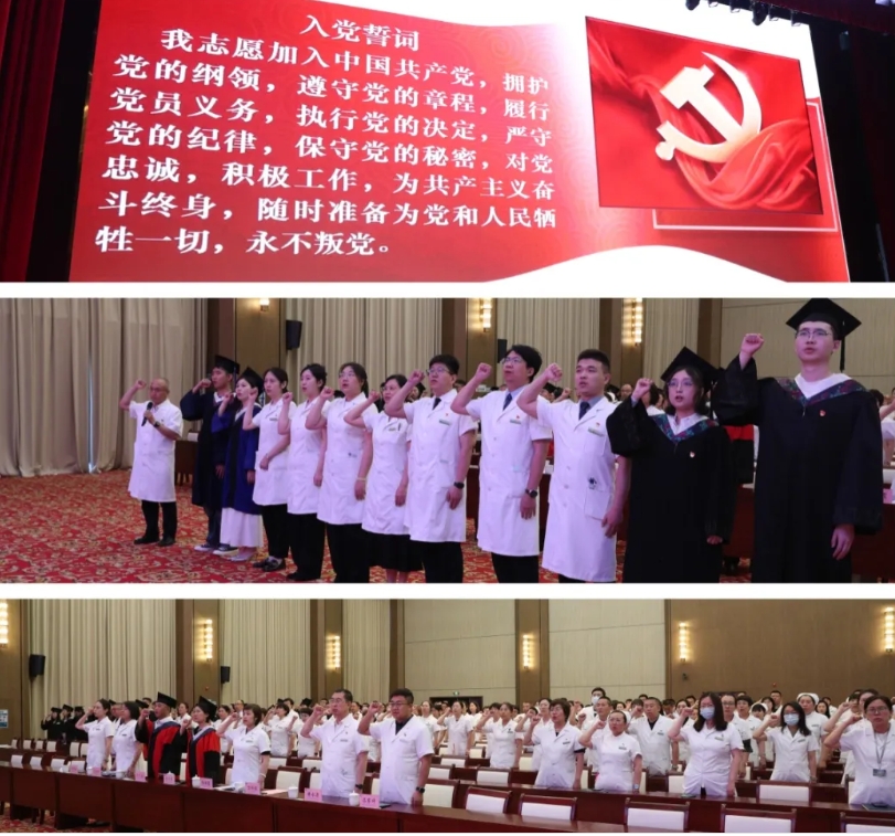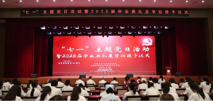 值此中国共产党成立104周年,为传承红色基因,进一步提升党员干部党性修养,党建与医学人才培养深度融合,深化毕业生爱国主义教育和理想信念教育,引导毕业生筑牢信仰之基,补足精神之钙,6月30日下午医院、学院组织开展“七一”主题党日活动暨2025届毕业典礼。医院领导班子、全体环节干部、党支部书记、党支部委员、各科室教学秘书及学院导师和2025届毕业生参加了活动,党委副书记仝利俊主持活动。