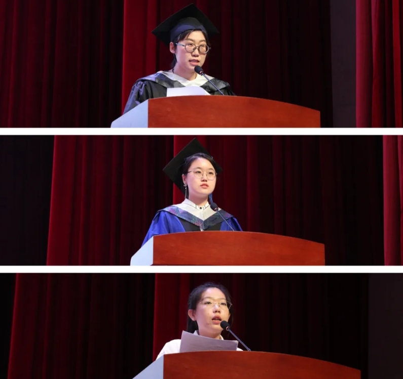 毕业生代表张宇萌、杨铭谦、巩宇娜发表毕业感言