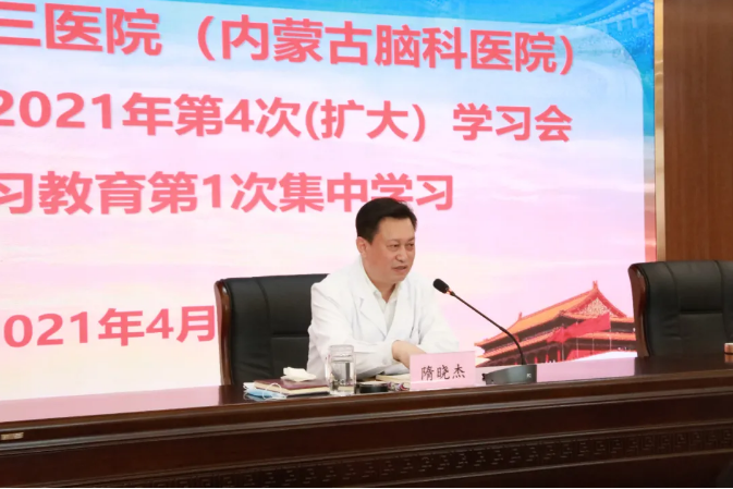 4月6日下午,内蒙古自治区第三医院党委召开理论学习中心组2021年第4次(扩大)学习,专题学习《中国共产党简史》。会议由党委委员、院长隋晓杰主持,全体党委委员、环节干部和各党支部书记、支部委员参加了会议。
