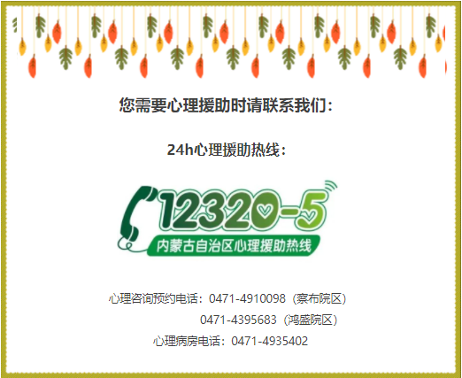 内蒙古自治区内,直接拨打12320,语音提示以后转5号键的心理援助热线。