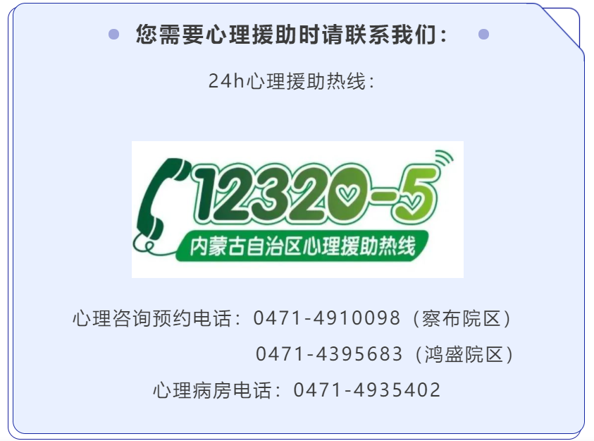 呼和浩特市的市民朋友们在两年的抗疫战争中不断坚守,我们所有在抗疫一线奋战过的医务人员、工作人员都经过支援湖北抗疫工作、承担境外归国人员隔离工作、支援额济纳抗疫工作、支援满洲里抗疫工作等一次又一次或凶险、或反复的考验,有着丰富的抗击疫情的工作经验。所以,请您一定要坚定信心,怀有希望,12320-5心理援助热线将24小时在线,为您的心理健康保驾护航,与您一起等待春暖花开!